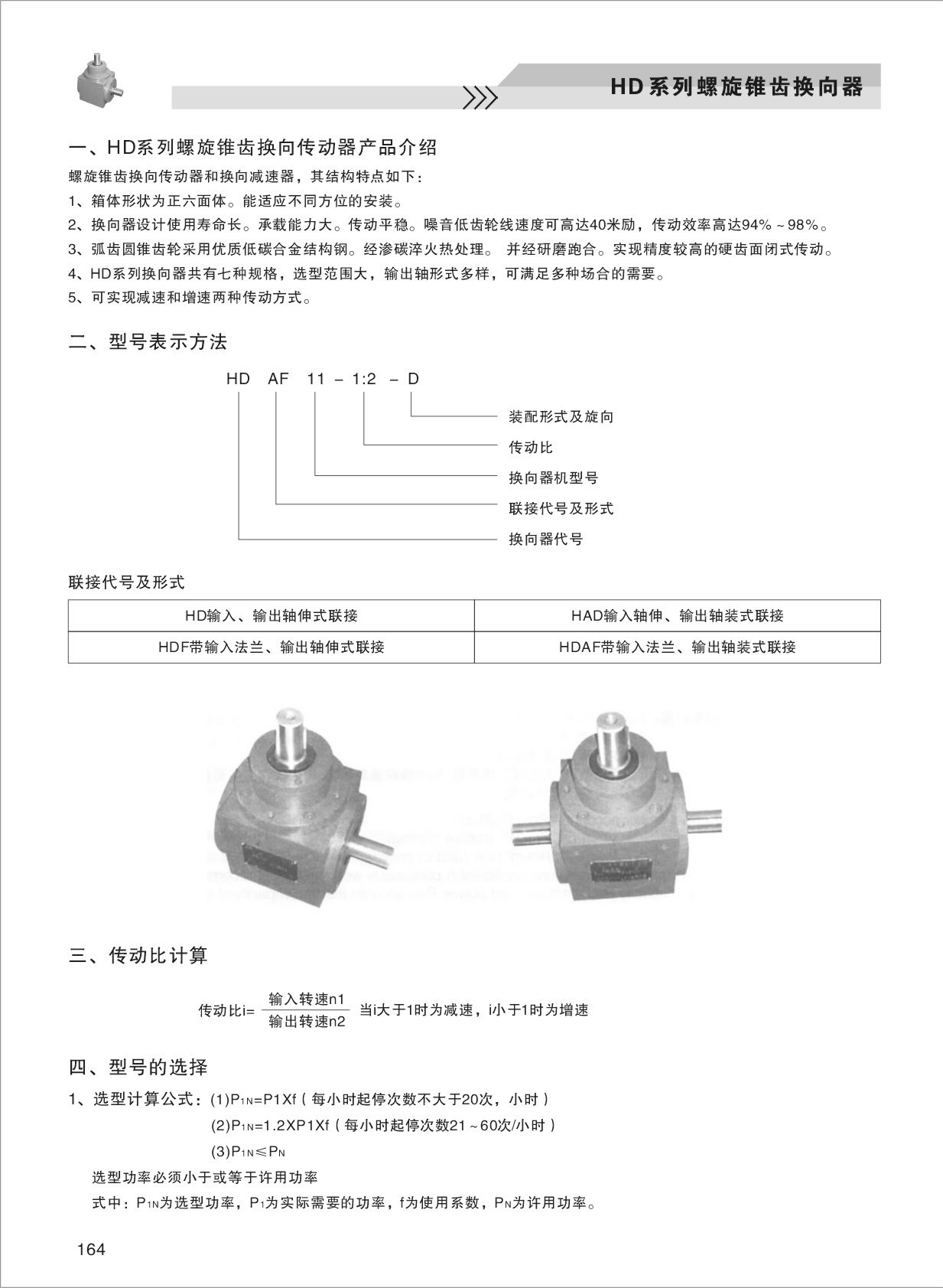 SP系列換向器有SPL、SPS和SPV型,SPL用于減速傳動(dòng),SPS用于增速傳動(dòng),SPV為換向器串聯(lián)時(shí)選用。齒輪采用低碳合金鋼,齒面滲碳淬硬。該系列轉(zhuǎn)向箱齒輪為弧齒錐齒輪;齒輪采用浸油潤(rùn)滑;機(jī)體材料為灰鑄鐵;加強(qiáng)型機(jī)體材料為鑄鋼。