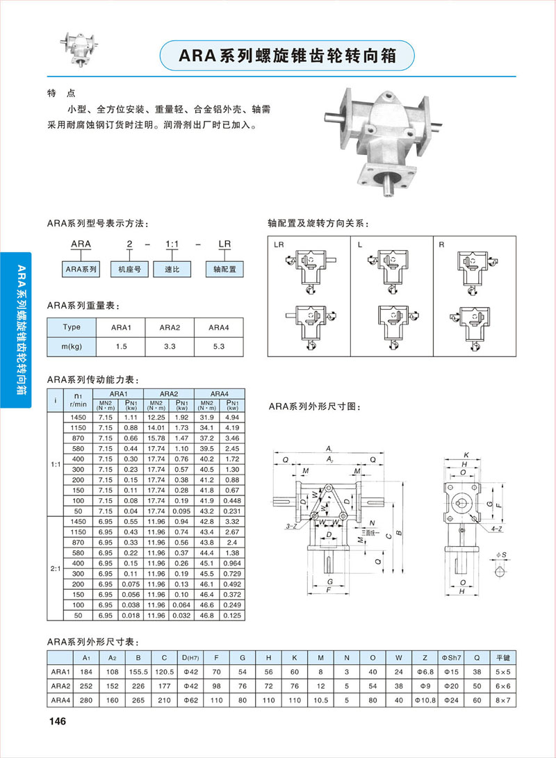 ARA系列轉向箱型號有: ARA0、ARA1、ARA2、ARA4;